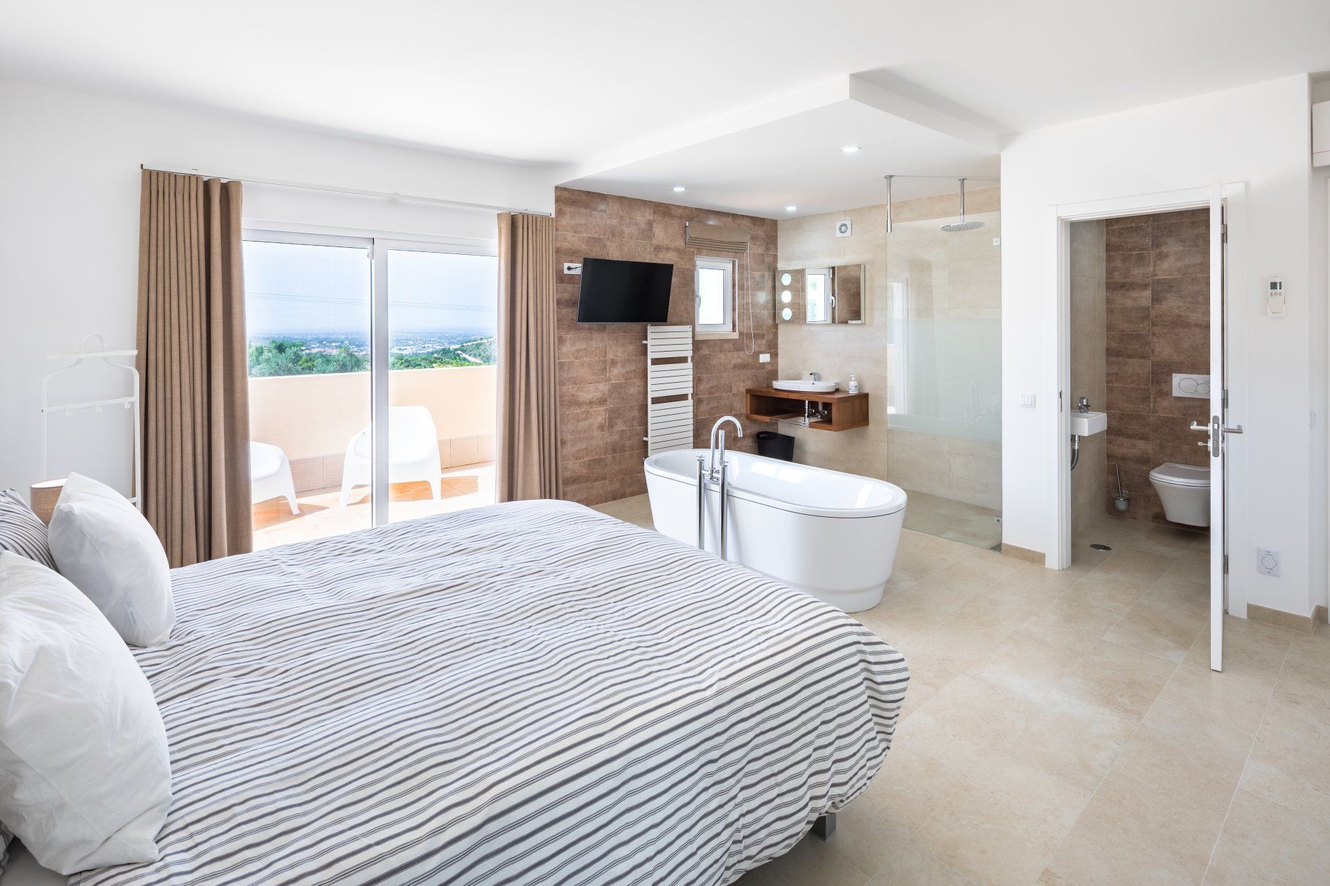 Casa da Rosa comfortably sleeps 12 adults in 6 King Size or Twin bedrooms - we can also provide two extra fold-out single beds and three cots if needed. All the bedrooms and lounge/dining room have remote controlled air-conditioning. The master bedroom has an open bathroom with a freestanding bathtub.